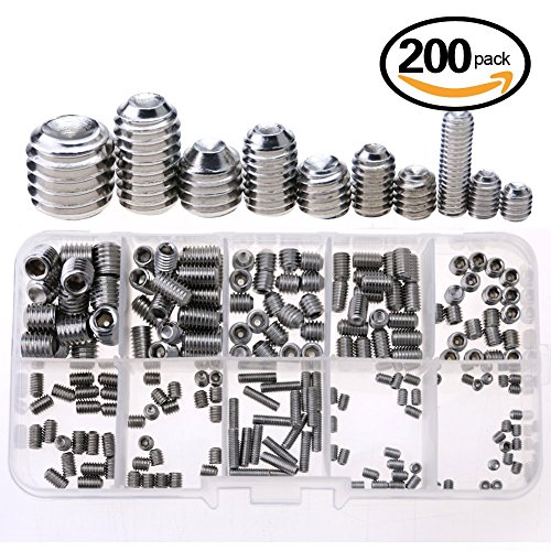 Glarks 200-Piece M3 4 5 6 8 Hex Allen Head Socket Set Screw Assortment Kit (304 Stainless Steel)