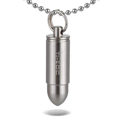 Package include: 1 x TI-EDC Titanium Handmade Waterproof Bullet Design Mini Size Charm Pendant Pill Fob + Necklace chain (23.6 inches)
