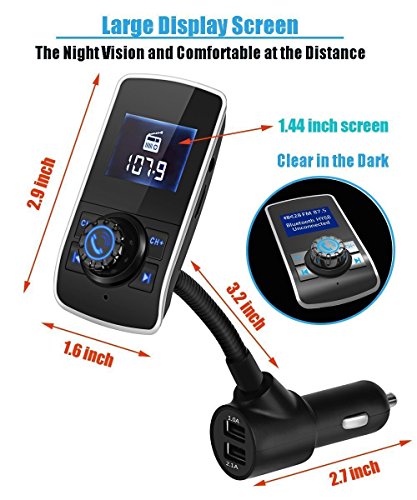- • WHAT'S MORE- - hands-free call make your drive safely; support TF / MicroSD; support A2DP; support only MP3/WMA format songs in TF Card; support AUX output and input. Support the flash drive. 1.44 inches screen provides clear display: Song's Name, Voltage of car battery,incoming phone call number.