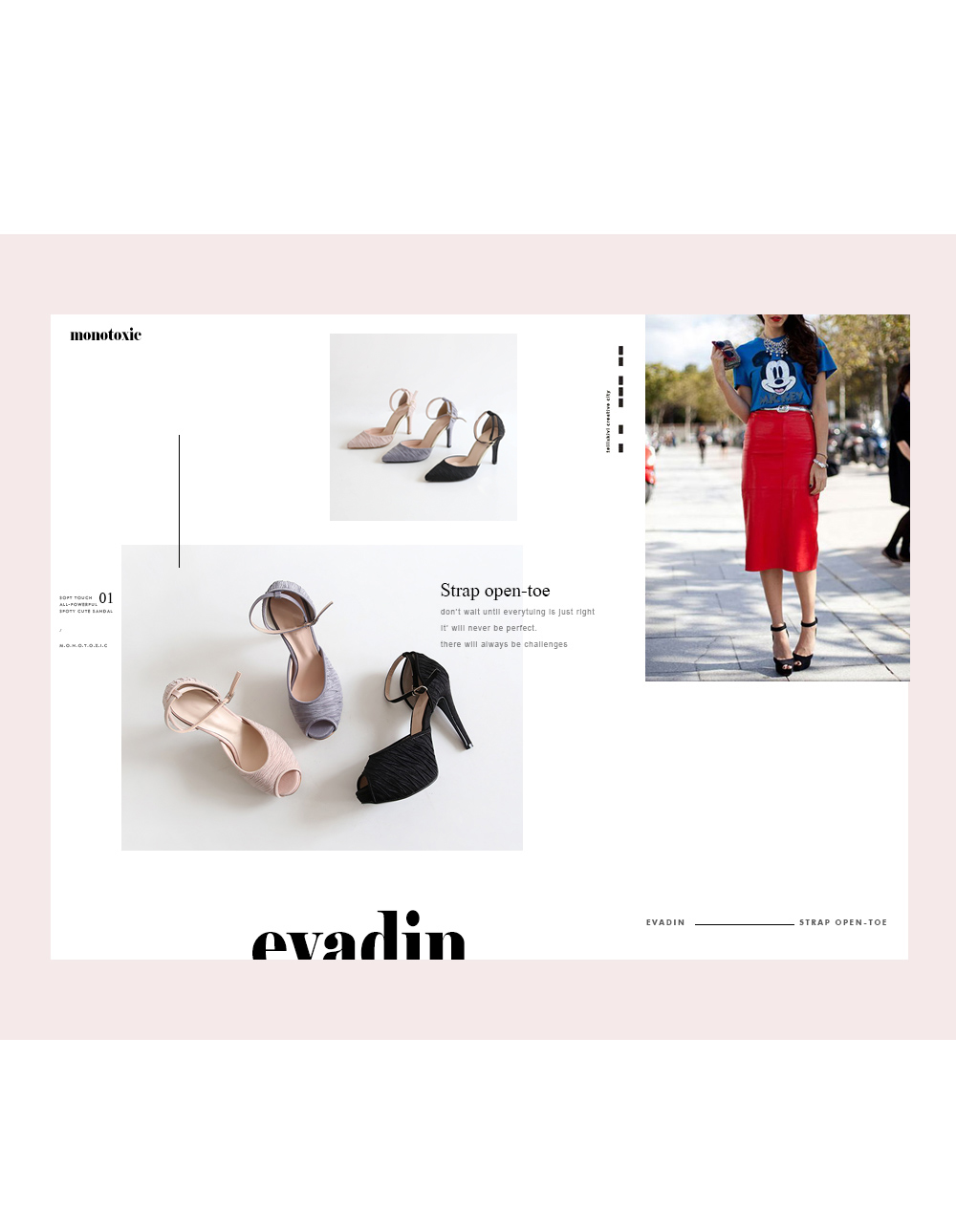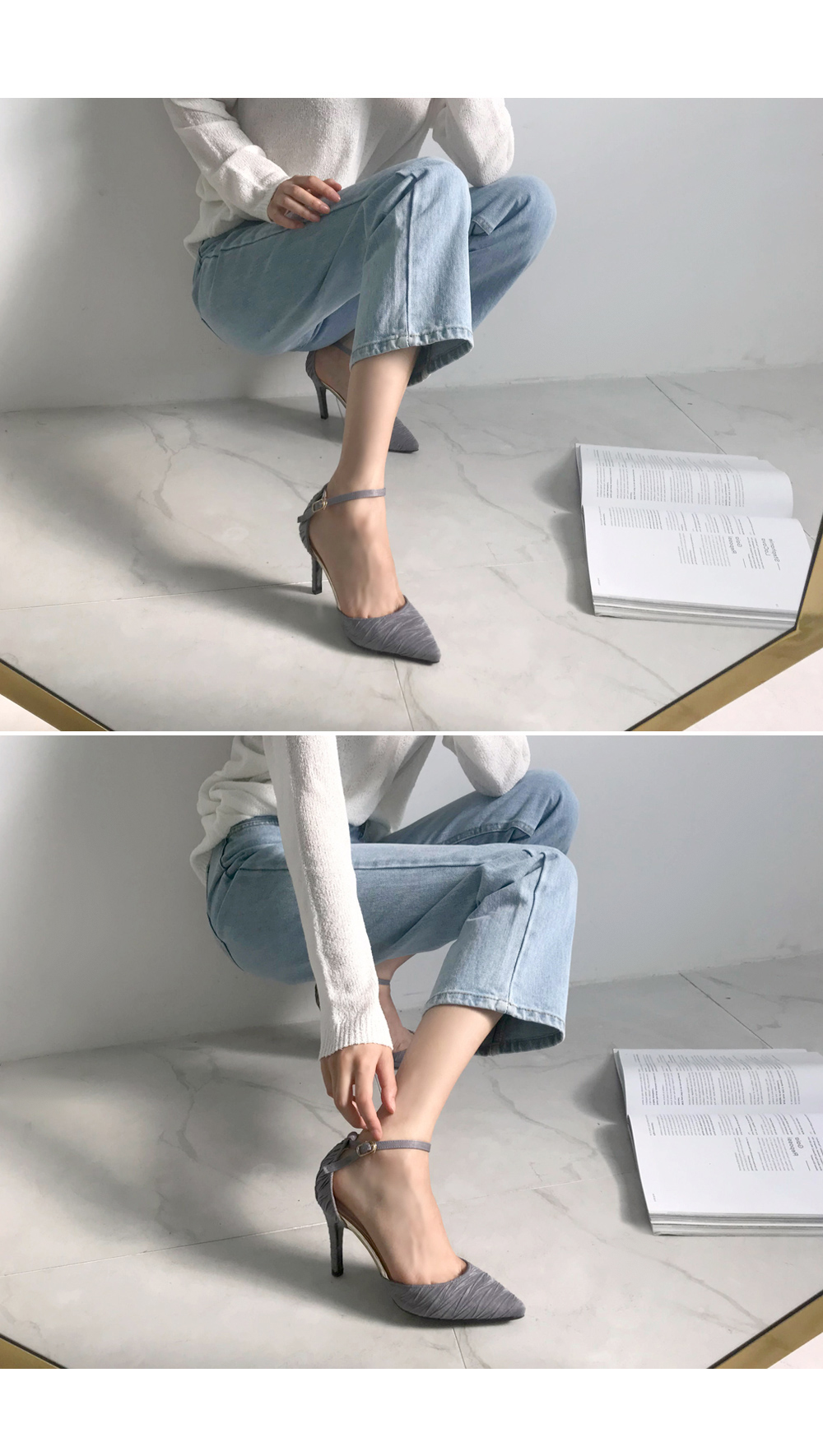 전체적으로 슬림한 라인이 발의 여리함을 보여주고 다리라인도 보정해줍니다.
