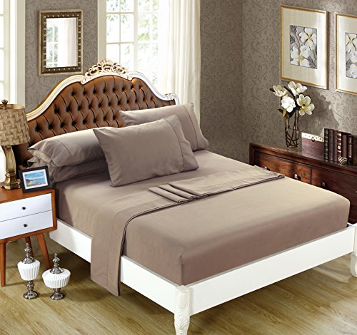 Fitted Sheet Queen Taupe,Deep Pocket Brushed Velvety Microfiber,Wrinkle,Fade,Abrasion Resistant