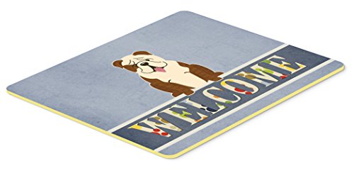 Caroline's Treasures English Bulldog Brindle White Welcome Kitchen or Bath Mat 20x30, 20Hx30W, Multicolor