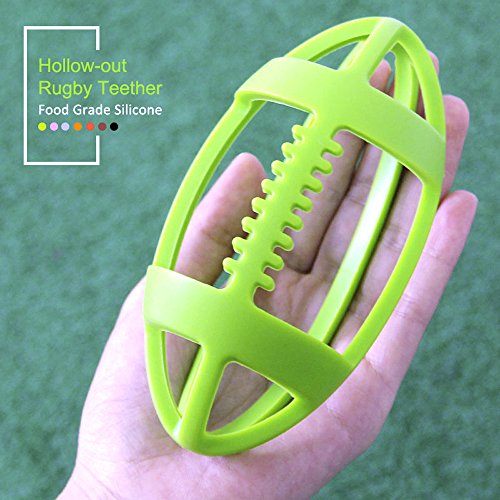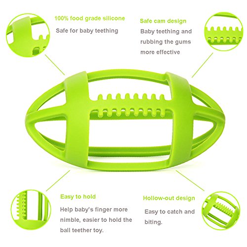 V-TOP Baby Sensory Teething Toy Ball, Rugby Teether Easy to Catch Activity Ball for Toddles (Green Rugby)