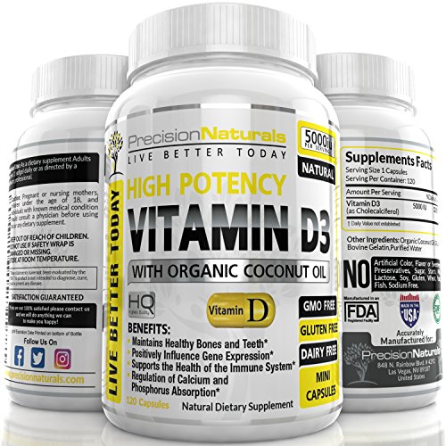 -. Title : Vitamin D3 5000 IU - 360 Softgels in Cold Pressed Organic Coconut Oil, High Potency, Made in USA, Non GMO, Supports Bone Strength and Immune System Health, Natures Best Supplement Fast Dissolve