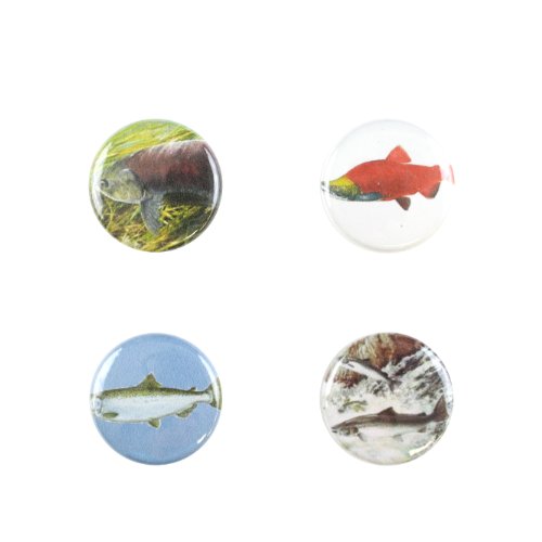 - Set of 4-salmon themed magnetic wine and drink charms; a unique way to "mark your drink"; works with any glass