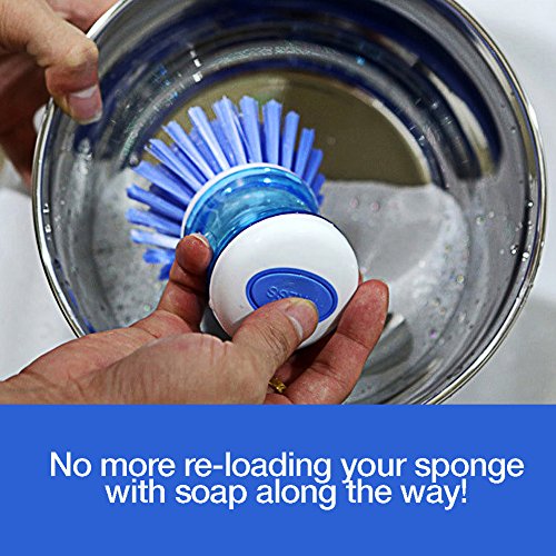 --- Revolutionary Soap Dispensing System --- Dishpansoap(TM) uses refillable soap dispensing system that squirts soap with a light push of the button on top. No more re-loading your sponge with soap along the way!