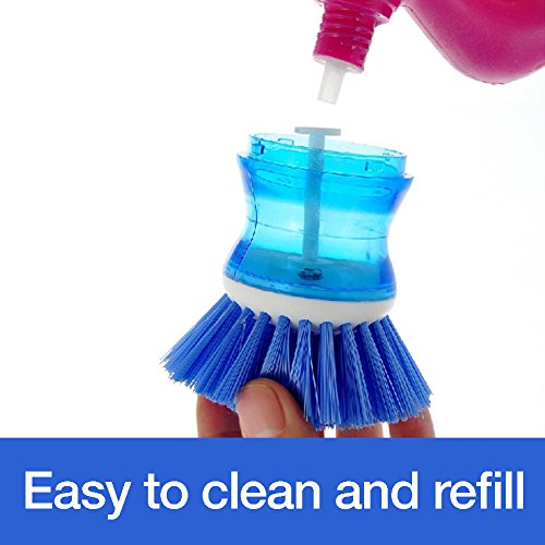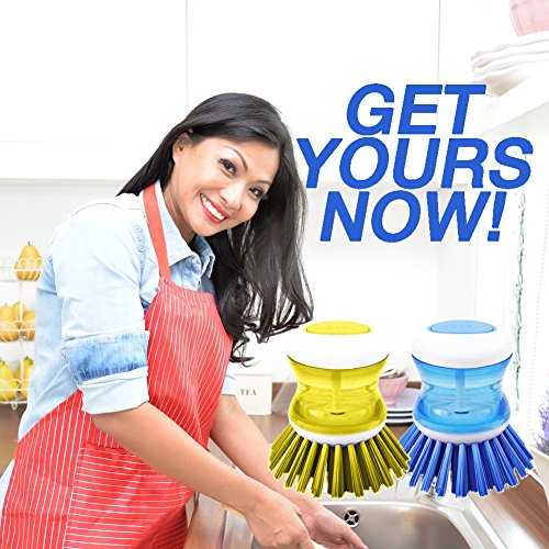 DishPanSoap | 2 Pcs Soap Dispensing Dish Palm Brush with Powerful Nylon Bristles for Kitchen Sink Pot Bowl Pan, Scrubber Cleaning Gadget Tool, Dishwasher...