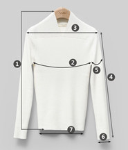 | 尺码 | ①衣长 | ②胸围 | ③肩宽 | ④袖长 | ⑤袖臂围 | ⑥下摆围 | ⑦袖口围 | ||