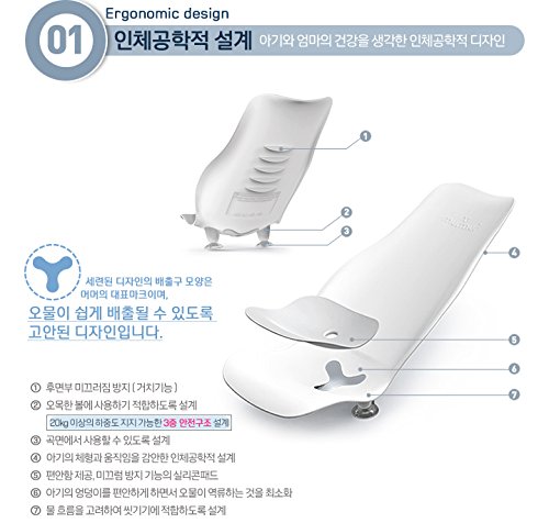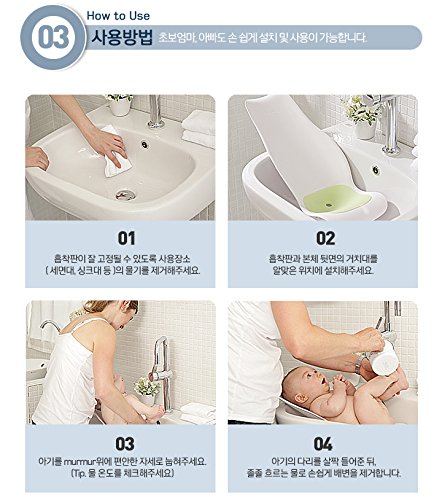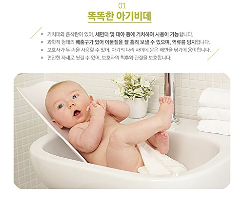 -. Feature : Every time, Every where wash by love, wash by murmur / Smart baby bidet - It can shower to baby at washbasins, sinks, basins. / Baby bidet - vanity, sink, etc. are available. . Has created a cathartic outlet. Can you clean cathartic easier and prevents Filth backflow. / Bath seat -If washing at bath and basin, create a stable posture / Feeding Seat - If washing at bath and basin, create a stable posture. / baby can keep comfortable in the supine posture state. / Protect your baby's neck / You can prevent skin irritation. / Protector can maintain a comfortable position. / You can also protect the joints of the mother. / Ergonomic Design - Rear slip (mounted) / triple safety structure (Can bear out more a 20kg load.) / Also available on the surface. / Use a silicone pad to can prevent slipping. / Age - newborn to 8 months (weight 20kg or more) / Support load - 20kg or more / Configuration - body, silicone pad / Size - Body(40 x 19cm), Pad(17.5 x 17.5) /Material -Body(PP), Pad (Silicon)