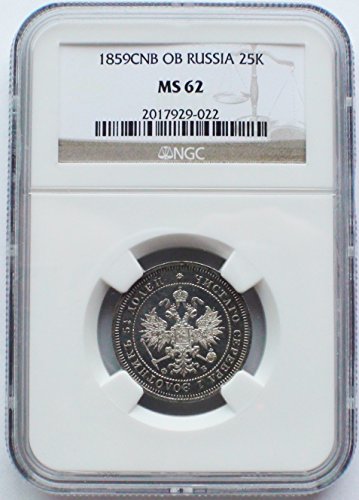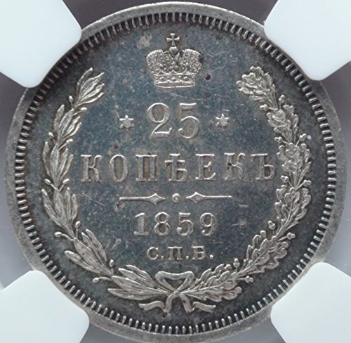 1859 RU CNB OB Russia Alexander II Russian 25K 25 Kopeks Coin Silver MS-62 NGC