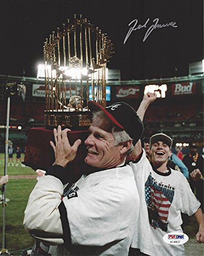 AUTOGRAPHED Ted Turner 1995 Atlanta Braves Baseball WORLD SERIES CHAMPIONS (Team Owner) On-Field Celebration Signed Picture 8X10 Inch Glossy MLB Baseball Photo with PSA/DNA COA