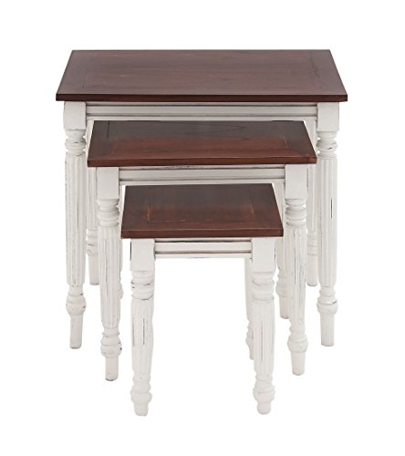 -. Title : Benzara Nested Accent Table with Mahogany Construction, Set of 3