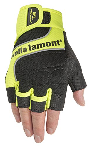 Wells Lamont Men's Hi-Viz Fingerless Synthetic Leather Work Gloves, Large (841YL)