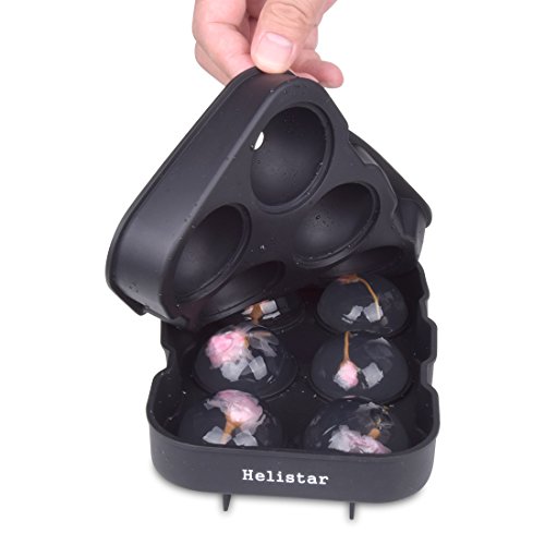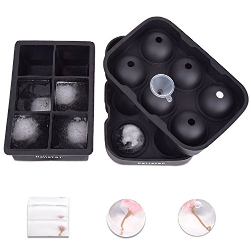Ice Ball Maker Mold Ice Cube Trays Helistar Silicon Sphere and Large Square Molds for Whiskey and Cocktails, Reusable and BPA Free (set of 2) (Black+Black)