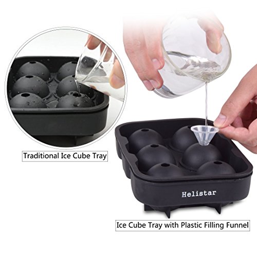 - PLASTIC FILLING FUNNEL: Filling the ice cube tray using the supplied plastic filling funnel with the cover means that you can fill the ice cube trays easily, without spilling any water or other ingredients like chocolate while preparing the ice balls for the freezer. This quick and easy system saves you time and effort of cleaning any spillages on the mold commonly found other ice tray systems.