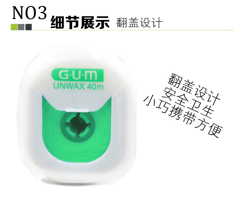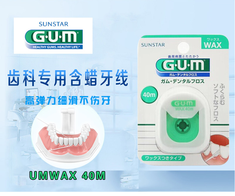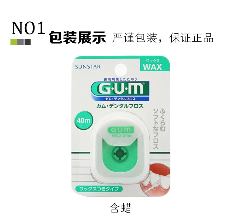 日本进口40米GUM全仕康膨胀牙线齿科专用含蜡牙缝残渣牙菌斑