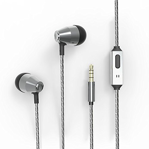 -. Feature : Rich Sound and Deep Bass: Strong stereo, bass driven sound. Metal earphone shell design provides powerful bass enhanced sound with superb musical details. Excellent dynamic unit enhances the high-definition sound. / Ergonomic Comfort-Fit & Sweatproof: ultra-soft ErgoFit in-ear earbud headphones conform instantly to your ears. Comfortable light-weight in-ear design earbuds with 3 set soft silicone ear tips (S/M/L) included for a perfect fit.Resistant to Sweat and Water Damage. / Universal Compatibility: Fits all 3.5mm plug mobile phone including iphone 6/6S, ipod, ipad,Samsung Galaxy, Huawei, android, smartphone, tablet mp3 players and many more. / Daily Uses: Lightweight design is ideal for listening during exercise travel or for everyday wear,Tonally balanced audio with crisp highs and deep low notes.Durable construction engineered and tested for the rigors of on-the-go listening. HANDS FREE: in-line remote control allows you to conveniently select songs, and take calls. Superior microphone has independently set ground wires to eliminate cross-talk and background static. / Tangle Free Round Cable: this cable is specifically designed to prevent natural tangling to give you a frustration-free listening experience.