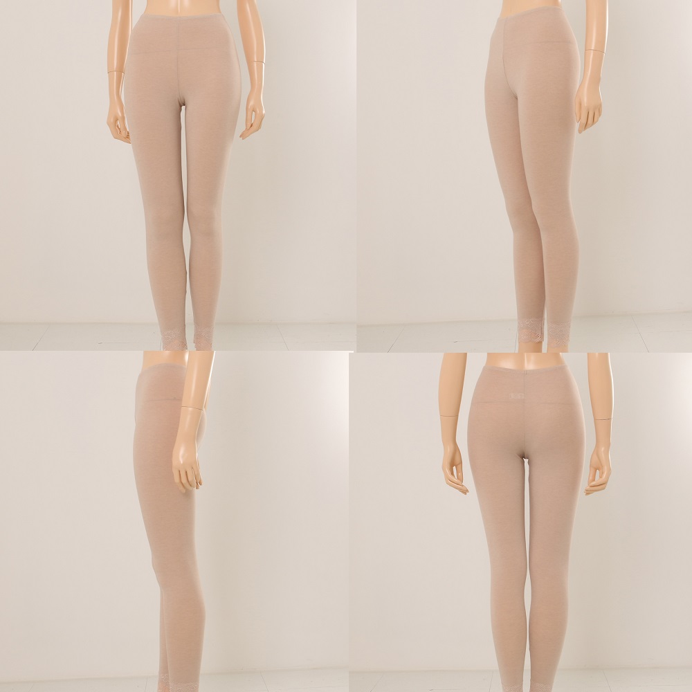 우수한 보온성과 함께 부드러운 터치감을 느낄수 있는 명품소재인 모달캐시미어 소재. 다리둘레에 고급스러운 레이스를 매치하고 레 이스 안쪽으로 원단을 중간까지 대어 레이스의 화려함 을 최대한 살리면서 보온성을 유지할수 있도록 하였다