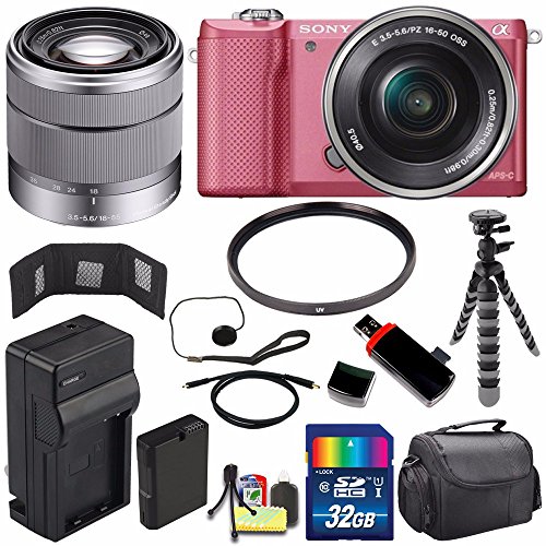 -. Title : Sony Alpha a5000 Mirrorless Digital Camera with 16-50mm Lens (Pink) + Sony SEL 1855 18-55mm Zoom Lens + 32GB Bundle 11 - International Version (No Warranty)