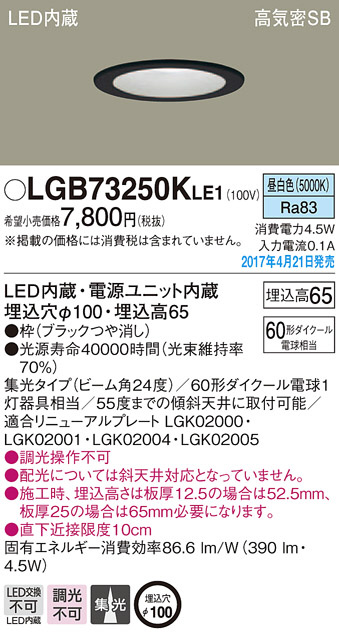 ●寸法(mm):埋込穴φ100・埋込高65