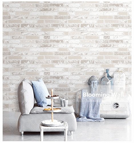 -. Title : Blooming Wall Faux Rustic Brick Wall Wallpaper Wall Mural, P.R.Iced in Double Rolls, Looks Real Up!03