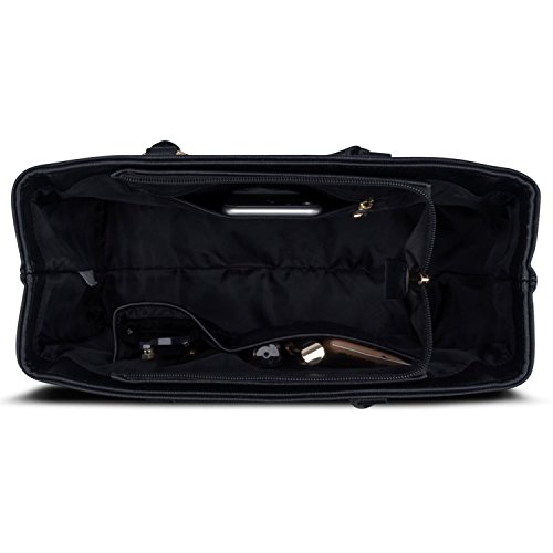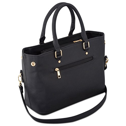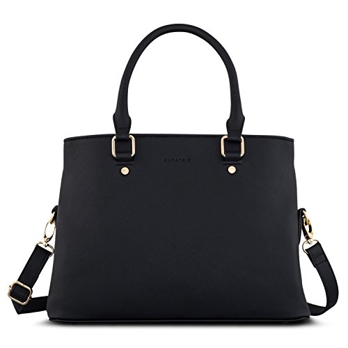 Handbag Women Black - Expatrié "Julie" Womens Satchel Bag made from Vegan Leather - Small PU Leather Shoulder Tote Purse Bag with top Handle - Fashionable Saffiano Look Bag with many Compartments
