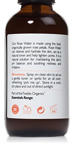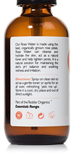 -. Feature : 100% PURE & ORGANIC ROSE WATER. There are no Chemicals, no Preservatives and definitely no Artificial Fragrances in our Rosewater. Just the pure scent of Organic roses dispensed through a convenient, easy to use facial spray cap. / COMPLETE SKIN CARE. Provides instant hydration for your face and neck whilst rejuvenating tired skin, helping to create a more vibrant and youthful complexion. Lightweight and versatile face toner that will restore your skin's pH balance and absorb excess oils (without causing dryness). Use this before applying our Organic Argan Oil for a new, natural beauty regimen. / SUITABLE FOR ALL SKIN TYPES. Normal, Oily, Dry and sensitive. We haven't included Witch Hazel in this toner as it can be a trigger for Rosacea. So you can use it with confidence that it will not make you break out in rash! This product is also a great toner for teen kids who are just starting out with make up. Great skin prep for Serums and Moisturizers and it can help unblock and tighten stubborn pores. / PERFECT FACIAL TONER. Anti-inflammatory properties of the organic rose water will calm skin irritations and can help with sunburn/razor burn. It can even help make your hair soft and shiny and provide hydration for your scalp. Great as a calming finish to any fitness or yoga session! Spray on to refresh tired skin after long car or plane journeys. Keep the conveniently sized 2oz bottle in your bag and our best value 4oz bottle at home! / 100% SATISFACTION GUARANTEE. We believe our Rose Water is great for all skin types. However, if you're not 100% satisfied with your purchase we will insist on refunding your money. You even get to keep the bottle so your friends or family can try it out. It's what we call our Risk Free Lifetime Guarantee.