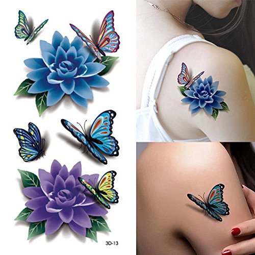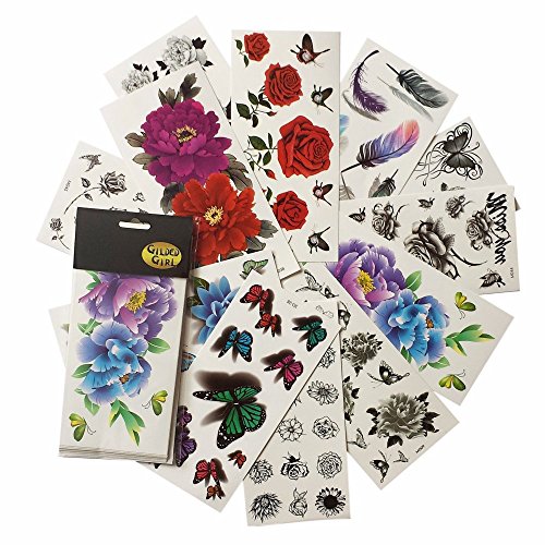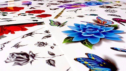 - SHIPS FAST FROM THE USA and contains 12 high-quality sheets that each measures approximately 7.5 x 3.5 inches with vibrant tattoos to suit your every mood. More than 100 individual body art tattoos in dozens of beautiful, vivid colors as well as black and white to choose from - flowers (roses, lotuses, cherry blossoms, peonies), butterflies, and feathers.