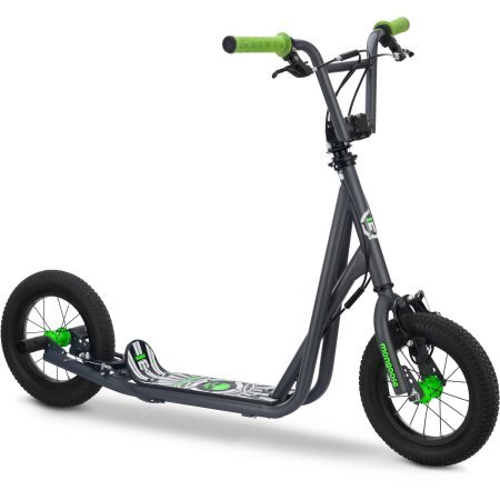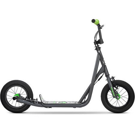 -. Brand : Generic -. EAN : 0714547218513 -. Feature : Features a wide foot deck for added balance and stability while coasting / BMX freestyle brake rotor and axle pegs make for a trick-ready scooter / Mongoose 12" scooter has alloy caliper hand brakes that offer intuitive speed control / 12" air tires perform well when riding on paved and unpaved surfaces, such as dirt and grass / Custom-designed frame built for geometry, fit and safety -. IsAutographed : 0 -. IsMemorabilia : 0 -. MPN : R6174WM -. PartNumber : R6174WM -. ProductGroup : Sports -. ProductTypeName : OUTDOOR_RECREATION_PRODUCT -. Title : Mongoose 12" Expo Scooter It features neon green accents Actual Color: Gray -. UPC : 714547218513