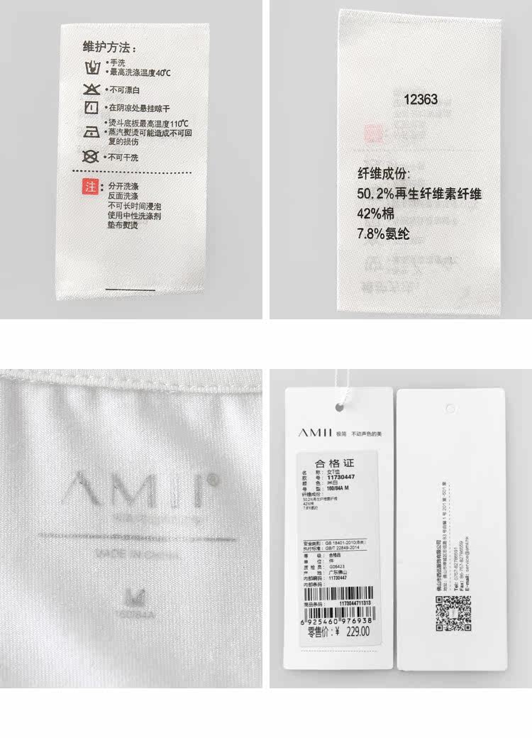 洗涤标准:不可浸泡不可漂白110℃以下垫布熨烫悬挂晾干40℃以下手洗不可干洗