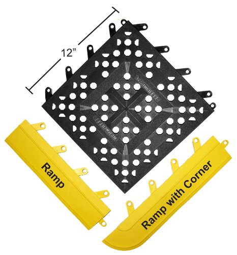 Wearwell PVC 540 FIT Functional Interlocking Anti-Fatigue Tile, for Wet Areas, 12" Width x 12" Length x 5/8" Thickness, Black (Pack of 20)