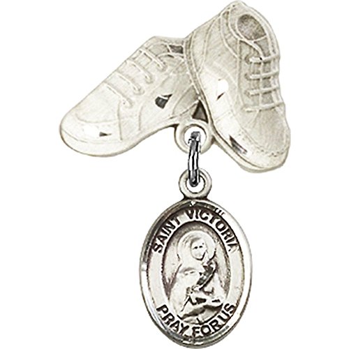 -. Title : Sterling Silver Baby Badge with St. Victoria Charm and Baby Boots Pin 1 X 5/8 inches