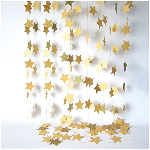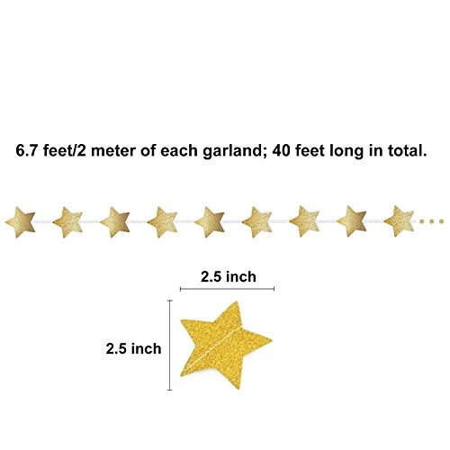iLoveCos Gold Stars Christmas New Year Decorations Party Garland for Birthday Party Baby Shower Christmas Decoartions, 80 inch of Each, 6 Piece