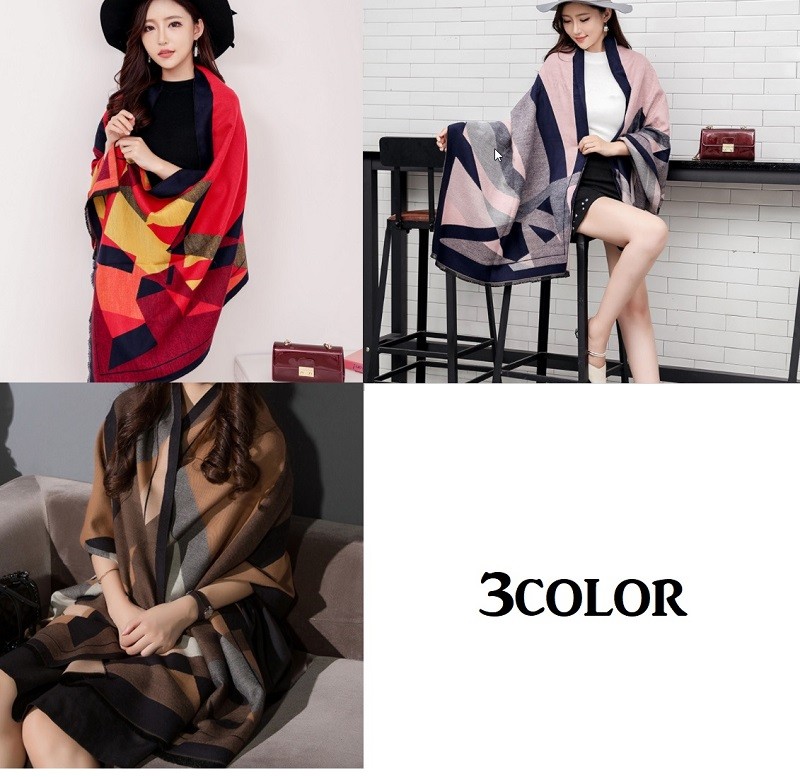 薄手で大きめ、やわらかくあたたかいカシミヤタッチのストール、マフラーです。 ちょっと寒い時に肩にかけたり、ひざ掛けにしたり、携帯にも嬉しい薄手なのでクルクルっと巻いてサブバッグに入れて持ち歩きも可能。 滑らかなタッチはずっと触っていたくなる肌触り。幾何学模様が角度によっていろんな表情を見せてくれます。 オトナっぽいデザインでそれぞれの配色がオシャレ。巻くだけ、羽織るだけで冬のダークなファッションを華やかに彩ります。 【素材】80%コットン 20%ボリエステル 【サイズ】70 × 190 cm