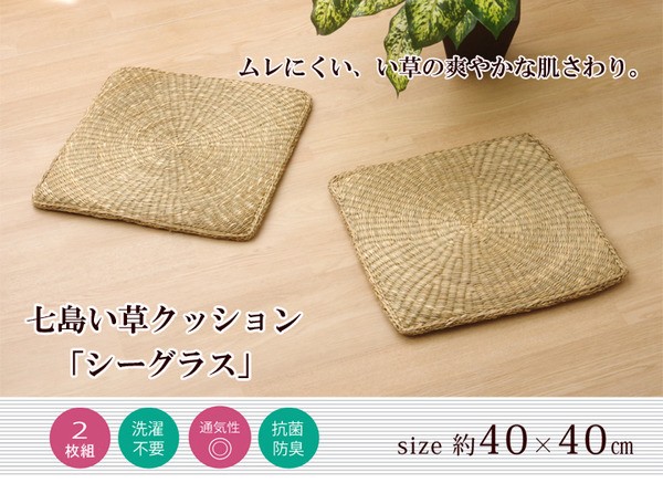 【商品名】い草クッション 七島クッション 七島藺草 シート 座布団 『シーグラス』 約40×40cm 2枚組