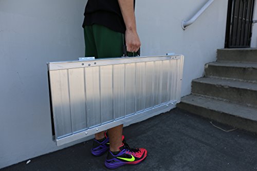 Studio : Syneticusa Publisher : Syneticusa Binding : Health and Beauty Product Description ABOUT THIS ITEM: -Load capacity: 700 pounds -Extended size: 36" long, 29" wide - Folded size: 36" long, approximately 14" wide - Self weight: 20 pounds - Material: aluminum (aircraft-grade) - Treatment: anodized for long-lasting use - Top surface: Full non-skid tape - Type: Single-fold / suitcase ramp - Guarding curbs on both sides 0
