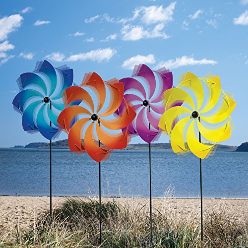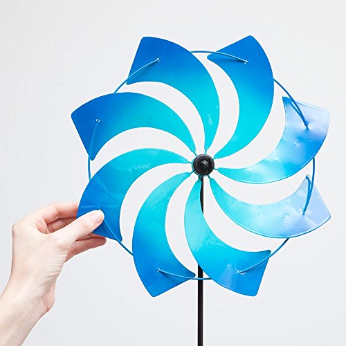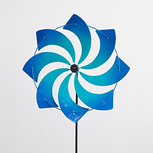 Bits and Pieces - Pinwheel - Wind Spinner - Two-tone Airbrushed Metal with Enamel Finish - 42" High 11-7/8" in Diameter - Blue