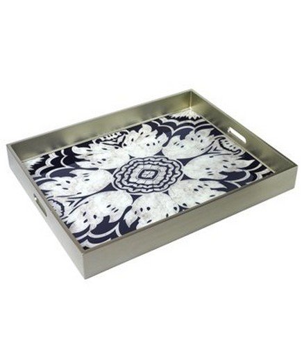 Arcadia Home M3Nlg Reverse Hand-Painted Mirror Glass Tray, Large, Navy,Large