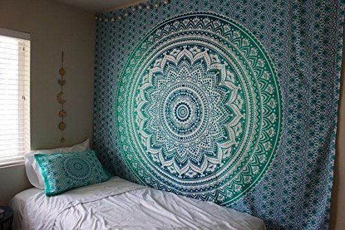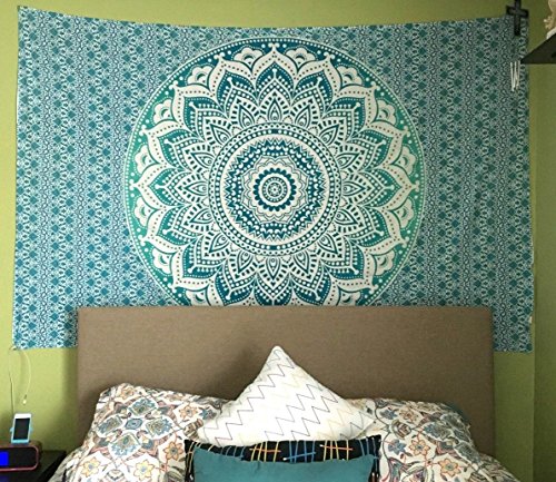 Studio : Jaipur Handloom Publisher : Jaipur Handloom Binding : Kitchen Product Description This Turquoise green Mandala Wall Tapestry Green mint Aqua Medallion tapestry can be used for a wall hanging, a table cloth, a bedspread, Bedding , Bed cover, picnic blanket, beach towel, yoga mat, sofa cover, Couch cover, furniture throw, curtains, altar cloth, hung from the ceiling, home decor, and more. Features: This gorgeous tapestry can be used for a wall hanging, a table cloth, a bedspread, furniture throw, curtains, altar cloth, hung from the ceiling, home decor, and more. - The colors are vivid and the pattern will probably fit in most places. - It is a great size, has vibrant colors, and looks great on bedroom or dorm room wall! - It's not too flimsy - The material is solid, the edges are finished, it isn't too thick or thin (though I suppose that depends what you want to use it for). - The colors are prettier than some of the original pictures make them look.. - The size is great. The measurements of tapestry is pretty accurate - Perfect to sit on the beach or hang on a wall. Pattern is clear, precise and even throughout. Overall, you will be very pleased with this product and I think it's a GOOD BUY! These Tapestries are completely screen printed in traditional Indian method . 100% Cotton - This tapestry are printed, not quilted or woven. They are hippie Indian tapestries. Thin as sheet. Good, tight power loom construction. Hemmed edges. DISCLAIMER: - The original color of items which you buy may differ minutely from the images due to camera capture sensitivity, lighting even your system screens, so there may be a minor possibility in change of brightness contrast. - Depending on the size of products there may be dimension variation because products are made by hand So hurry up BUY NOW WHILE STOCK LASTS.! 0 |