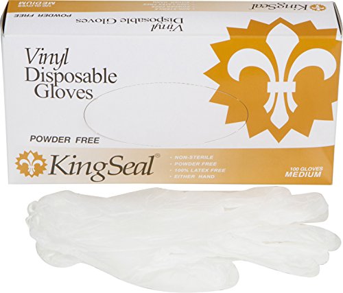 KingSeal Vinyl Disposable Gloves, Powder-Free, 4 mil, Clear, Medium, 4 bx/100 per Case
