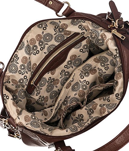-. Brand : Laurel and Sunset -. Department : womens -. Feature : Top zipper closure - Measures approx. 14.5'' Height, 16'' Length, 5'' Width / Faux leather - Gold tone metal / 1 exterior pocket - Lining: polyester / 5 pockets inside - One of the pockets is sized to hold a cell phone / Strap: 7.5'' drop - Additional strap: 21'' drop -. Model : LS-GC0021 -. ProductGroup : Shoes -. ProductTypeName : HANDBAG -. Title : Waverly Large Cross-body Convertible Tote