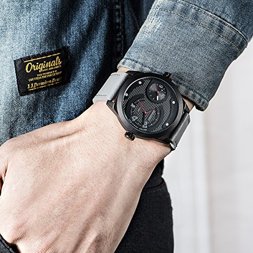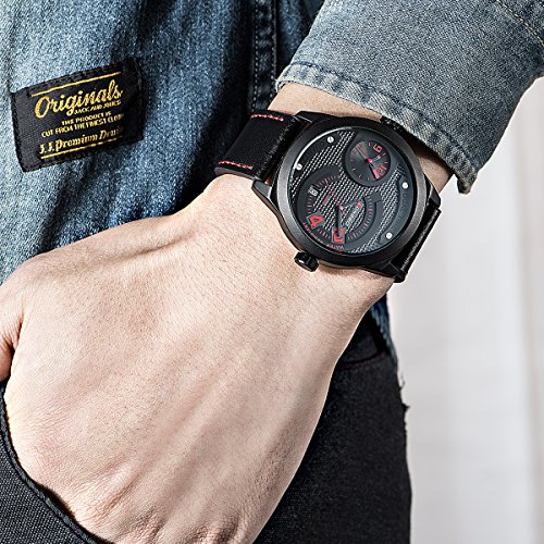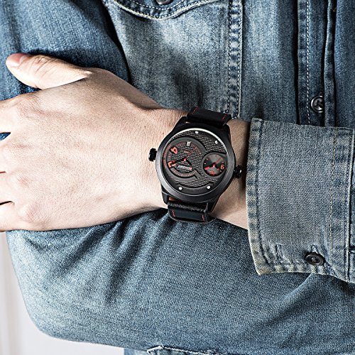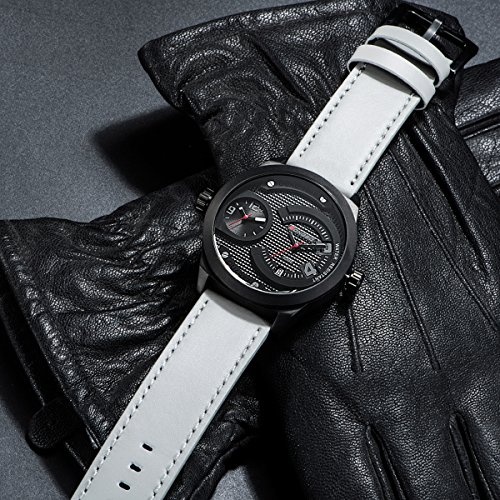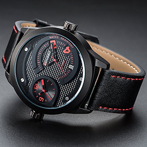 -. Feature : Quartz movement with analog display / Mineral crystal glass dial window, alloy and stainless steel case, silicone Band / Case diameter:45 mm approx, case thickness: 17 mm approx, band width:26mm approx / Functions:hour, minute, second, date, 24 hours function, chronograph,pointer with a luminous / Water resistant to 99 feet (30 M): withstands rain and splashes of water, but not showering or submersion