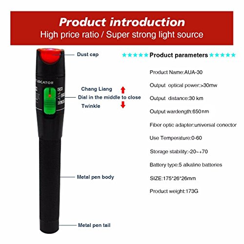Visual Fault Locator, GOCHANGE Red Light Fiber Optic Cable Tester Meter /30mW 30KM Cable Test Equipment with 1.25 mm FC or 2.5 mm connector, for CATV Telecommunications Engineering Maintenance