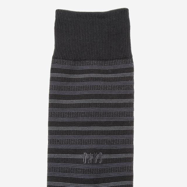 배색의 스트라이프 패턴으로 세련된 외관을 연출한 장목 양말입니다.