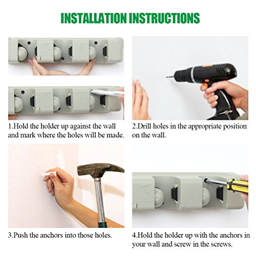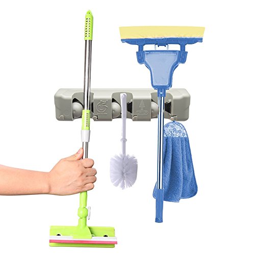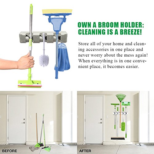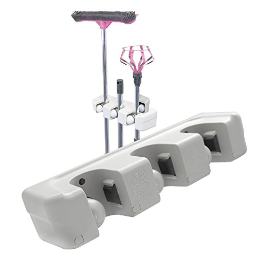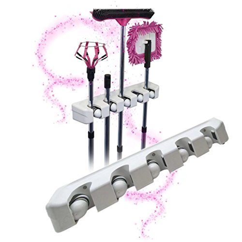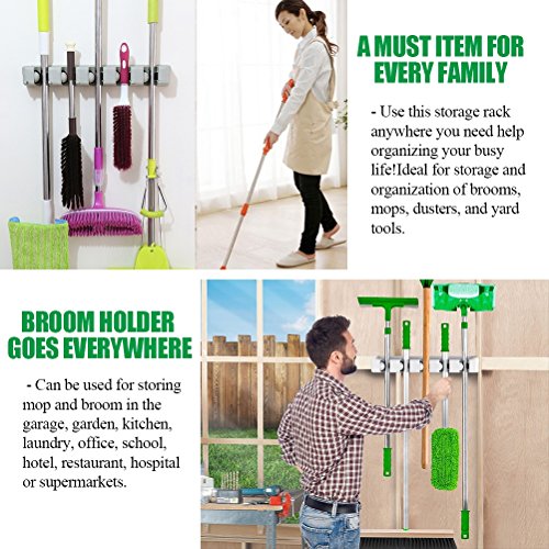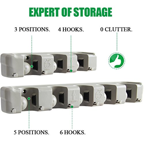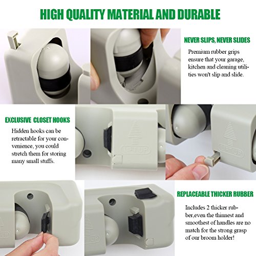 -. Feature : A MUST ITEM FOR EVERY FAMILY - Use this storage rack anywhere you need help organizing your busy life!Ideal for storage and organization of brooms, mops, dusters, and yard tools.RJOAM's broom holder keeps accessories in place so you don't have to worry about the mess or the hassle / BROOM HOLDER GOES EVERYWHERE - Can be used for storing mop and broom in the garage,garden,kitchen,laundry,office,school,hotel,restaurant,hospital or upermarkets!With this storage rack, no organization is too daunting! Depend on RJOAM mop and broom holder when your space needs a quick and efficient clean / NEVER SLIPS, NEVER SLIDES - Premium rubber grips ensure that your garage,kitchen and cleaning utilities won't slip and slide. Even the thinnest and smoothest of handles are no match for the strong grasp of this mop and broom holder / EXCLUSIVE DESIGN WITH CLOSET HOOKS - This hidden hooks can be retractable for your convenience, you could stretch the sturdy hooks. for storing many small stuffs, such as keys,brushes,towels,bathrobes or even oven mitts and umbrellas / INTIMATE SERVICE - We provide the best quality products and services for every household. With "Lifetime Money Back Guarantee" and "24-HOUR Customer Service Support",your investment is protected.We guarantee you the best experience when shopping with us!Click "Add to Cart" and we'll take care of the rest