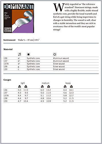 Thomastik-Infeld 141 Dominant Synthetic Core Viola Strings, Medium Gauge, 4/4 Scale, Set of 4