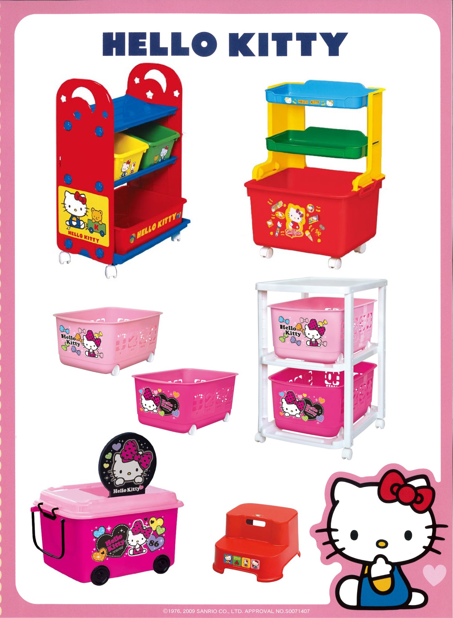 Nishiki Chemical [storage basket with wheels] Hello Kitty 1 2 3 basket Cherry Pink