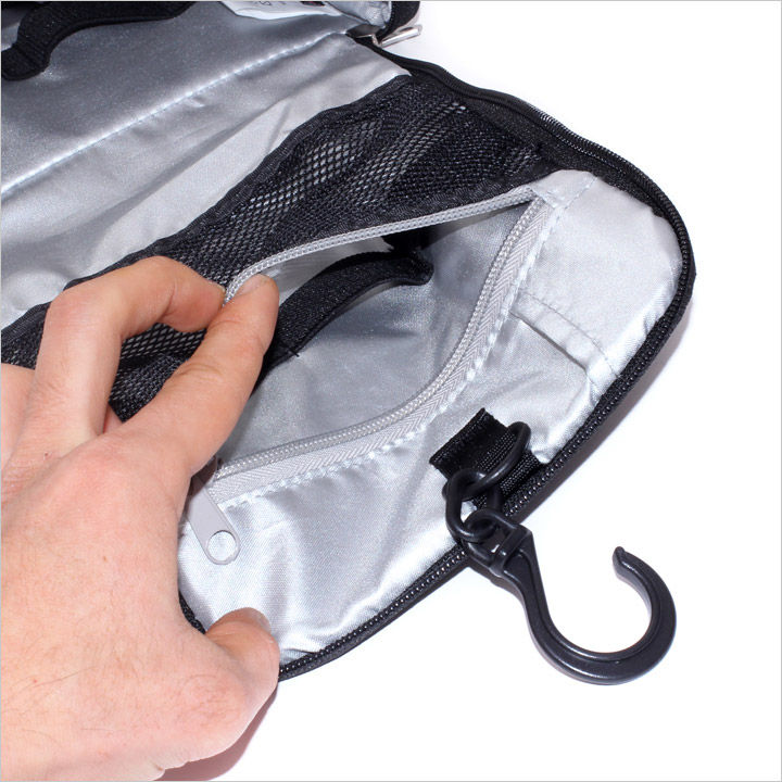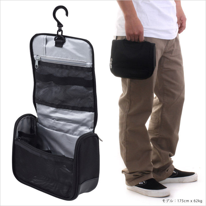 充実した多機能ポケットを完備し、フックで吊るして使用することもできるので旅行先などでも使い勝手の良さは◎