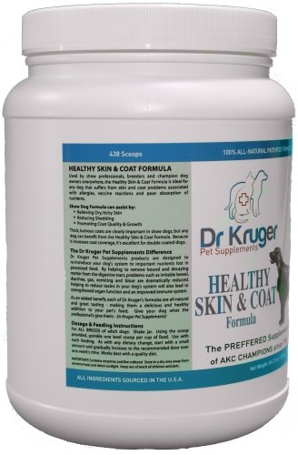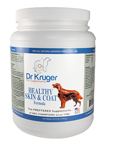 -. Binding : Misc. -. Brand : Dr Kruger Pet Supplements -. Color : Red and Yellow -. EAN : 0687166020303 -. Feature : Relieves Dry Itchy Skin Reduces Excessive Shedding / Promotes Proper Coat Quality and Growth / Improves Digestion and Nutrient Absorption / To provide Omega-3 and Omega-6 fatty acids for the promotion of healthy skin and hair growth/quality / This product will reduce inflammatory reactions (allergies) reflected in the Skin -. Label : Dr Kruger's -. LegalDisclaimer : FOR MORE INFORMATION GO TO WWW.DRKRUGER.COM -. Manufacturer : Dr Kruger's -. Model : HS-054 -. MPN : HS-054 -. PackageQuantity : 1 -. PartNumber : HS-054 -. ProductGroup : Pet Products -. ProductTypeName : PET_SUPPLIES -. Publisher : Dr Kruger's -. Size : Large -. Studio : Dr Kruger's -. Title : Dr Kruger Pet Supplements Healthy Skin and Coat Food for Dogs, 54.75-Ounce -. UPC : 687166020303