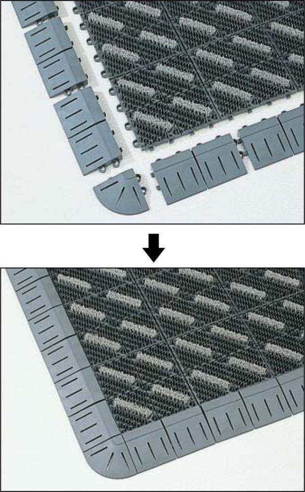 置き敷きマットとして使う場合に便利な専用ふち。つまずきやはね上がり等の危険を防止できます。